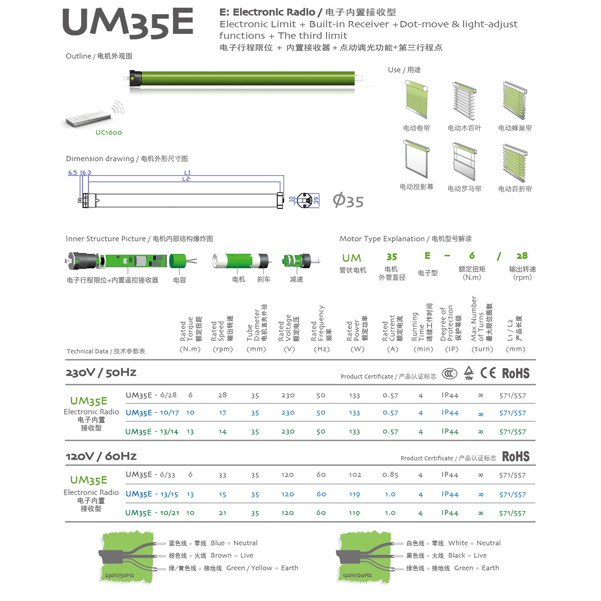 E:Electronic Radio/電子內置接收型 電子行程限位+內置接收器+點動調光功能+第三行程點